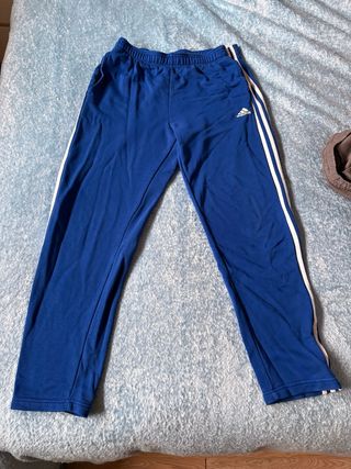 Chandals deportivos de Adidas. - Diseño clásico con tres rayas laterales blancas. - Cintura con cordón ajustable. - Bolsillos laterales.