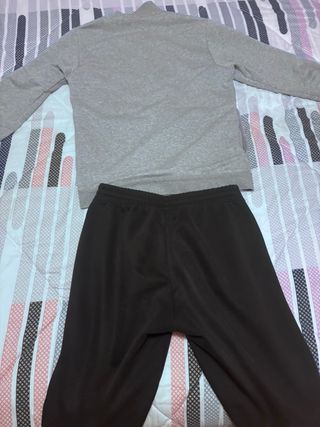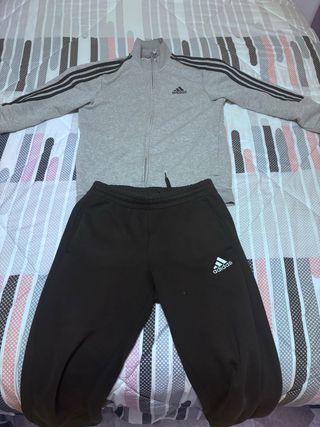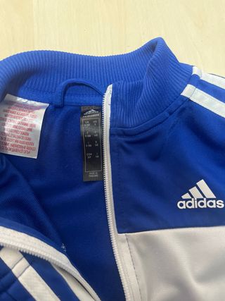 Conjunto deportivo Adidas de dos piezas. - Chaqueta con cremallera completa. - Pantalón con cintura elástica. El pantalon lo regalo xq esta un poco picado en la rodilla - Diseño clásico con tres rayas blancas en mangas y perneras.