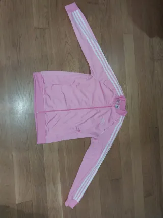 Chaqueta deportiva de Adidas en color rosa. Presenta el diseño clásico de la marca con las tres rayas. - Cierre de cremallera. - Puños y cintura elásticos. - Logo de Adidas bordado.