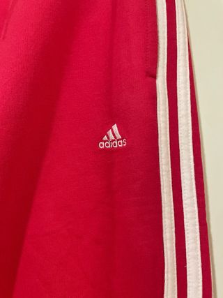 Pantalon ADIDAS original, usado 1 vez, tipo chandal. Color depotivo rojo escarlata. Talla M grande, cinturilla elástica con cordones en el interior dos bolsillos laterales. Con el logo bordado en blanco de las 3 Stripes característico de Adidas Clasicos. tobillos elásticos