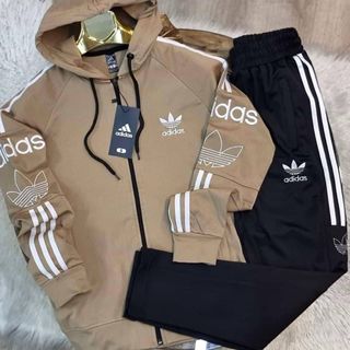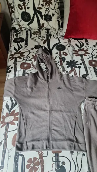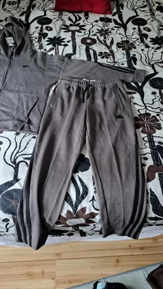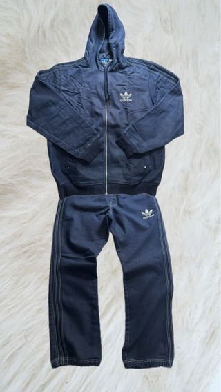 Conjunto deportivo completo de Adidas. 35€ por unidad o 65€ en conjunto. - Sudadera con capucha y cordones. - Pantalón con cintura elástica. - Diseño con las tres rayas icónicas de la marca en las mangas y piernas.