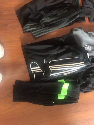 Lote de pantalones de chándal para chico. El mas pequeño es de unos 32 cm cintura, el resto son más grandes - Pantalones de la marca Nike. - Pantalones de la marca Adidas. - Pantalones de la marca SikSilk. - Diseños variados en color negro y multicolor.