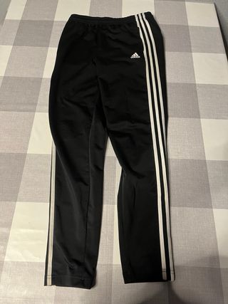 Chándal Adidas de color negro con las tres franjas blancas características de la marca a los lados. - Cintura elástica con cordón. - Logo de Adidas en la pierna derecha.
