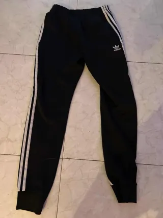 Pantalón de chándal Adidas de color negro. Cuenta con cintura elástica y cordón ajustable. - Logo de Adidas en la pierna. - Bolsillos laterales. Abierto a negociar el precio