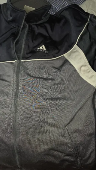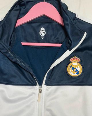 Conjunto de chándal oficial del Real Madrid, temporada 2025/2026, compuesto por chaqueta y pantalón. - Chaqueta con cierre de cremallera completa. - Pantalón con cintura elástica. - Diseño deportivo con detalles característicos del club y la marca. Lo vendo porque me he equivocado de talla No negociable el precio