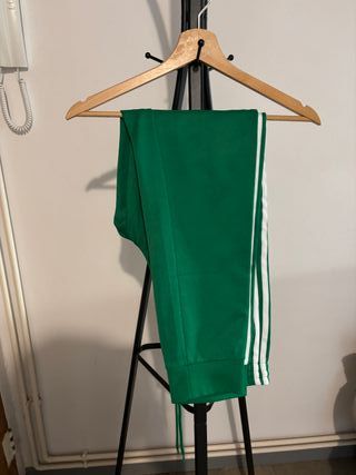 Chándal Adidas de color verde con detalles blancos. - Diseño clásico con tres rayas. - Logo de Adidas en la pierna.