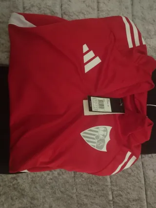 Conjunto deportivo del Sevilla FC. - Diseño con escudo del equipo. - Detalles de rayas blancas en las mangas.