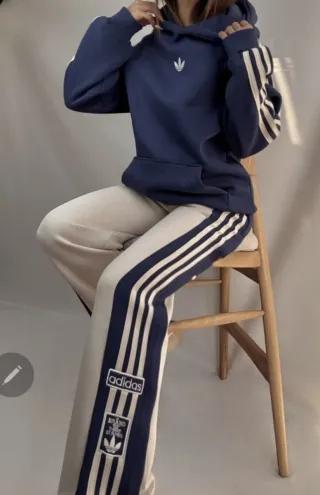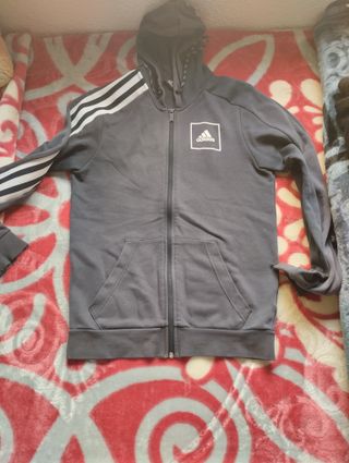 Conjunto de sudadera + pantalón, cómodo y moderno, ideal para deporte o uso diario. Material de alta calidad que combina estilo y comodidad. ✔ sin manchas ni roturas ✔ Cremalleras y bolsillos en perfecto estado ✔ Poco uso, como nuevo ✔ Talla xs - Sudadera con capucha y cremallera completa. - Pantalón con cintura elástica y cordón. - Diseño con las tres rayas características en las mangas y perneras.