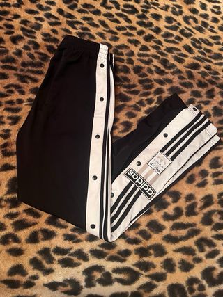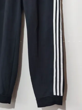 Pantalón deportivo Adidas de color negro, con las icónicas tres rayas blancas a los lados. - Diseño moderno y cómodo. - Cintura elástica con cordón ajustable. - Logo de Adidas bordado.