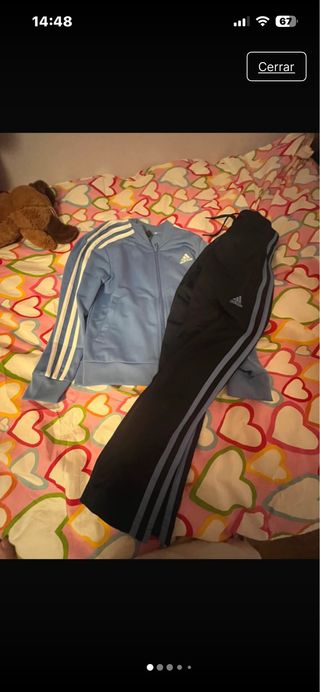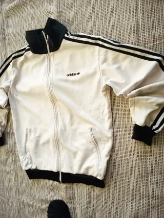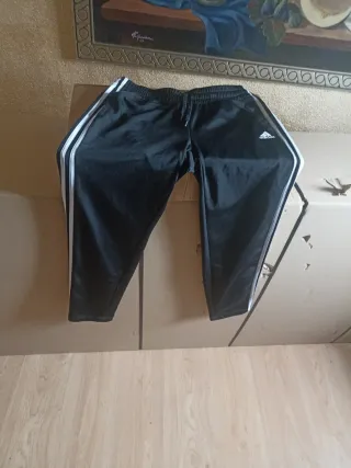 Talla XS (tiene la etiqueta despintanda pero equivale a xs por sus medidas) Chaqueta 56cm de largo 44cm de axila a axila Pantalón 97cm de largo 37cm de ancho de cintura Si compráis lotes hago descuento Conjunto deportivo completo de Adidas. - Chaqueta con cremallera completa. - Pantalones con cordón ajustable en la cintura. - Diseño con tres rayas en las mangas y perneras.