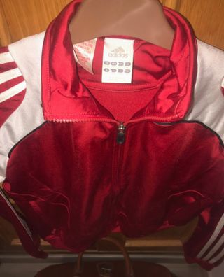 Chaqueta deportiva Adidas de estilo retro. Es una prenda estupenda para lucir un look deportivo con estilo. Es de mujer. - Cremallera completa - Detalles en rojo y blanco - Diseño de corte clásico
