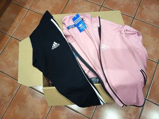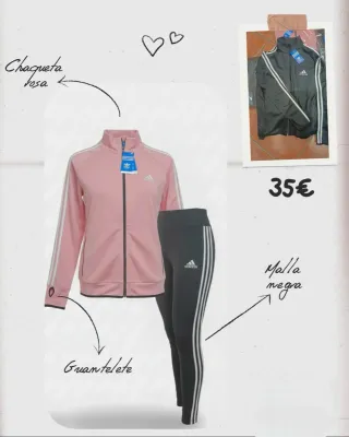 Chandal completo de adidas con chaqueta rosa y pantalon negro como nuevos