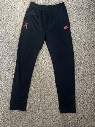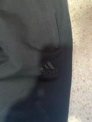 Pantalón deportivo Adidas en color negro. Cuenta con un diseño moderno y detalles característicos de la marca. - Cintura elástica. - Cremalleras en los bolsillos. - Tres rayas laterales. Sin usar. Parte de un conjunto, también tengo la chaqueta.