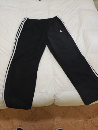 Chándal Adidas para hombre en color negro, en excelente estado. - Cintura con cordón ajustable. - Logo de Adidas en la pierna. - Puños elásticos en los tobillos.