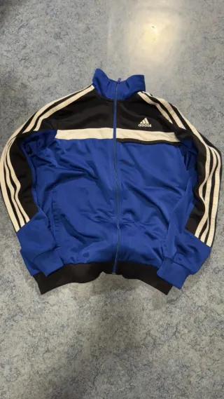 Chándal Adidas completo, ideal para deporte o uso diario. - Incluye chaqueta y pantalón. - Diseño clásico con tres rayas blancas. - Está en buen estado.