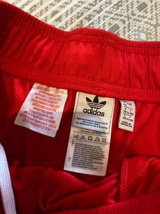 Pantalón deportivo Adidas Originals de color rojo. - Diseño con las tres rayas blancas laterales. - Logo de Adidas en la parte frontal. Talla S, buen estado