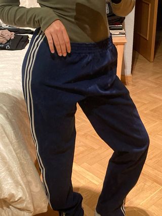 Pantalón de chándal recto de Adidas Original con muy poco uso, está arrugado de estar guardado. Tiene bolsillos con cremallera (foto 4), goma en el el final del pantalón (foto 5) y cordones por dentro de la cintura (foto 6). La talla es 15-16 años, osea talla S-M. 37cm de cintura (ajustable) X 99cm de largo.