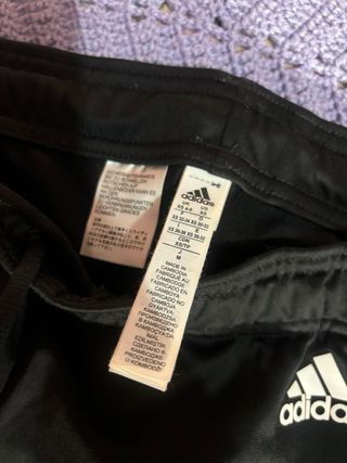 pantalón de chandal de adidas, talla xs. mido 1,54 y es de tiro bajo, es original y tiene cordondes y en la pierna de puño