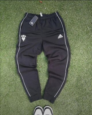 Pantalones de chándal Adidas en color negro. Cuentan con un diseño deportivo y detalles de ribete blanco. - Logo de Adidas en la pernera. - Escudo del equipo en la otra pernera. - Bolsillos laterales.