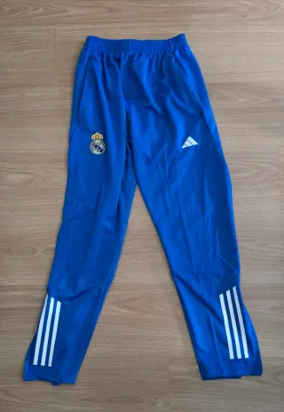 Chándal oficial del Real Madrid para la temporada 2025-2026. - Diseño moderno y deportivo. - Escudo del club y logo de la marca. - Detalles en azul en mangas y cuello.
