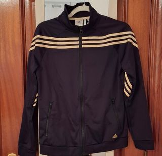 Chaqueta adidas, talla M, color negro con rayas doradas. En muy buen estado.