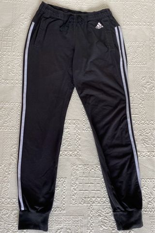 Pantalón de chándal Adidas original. Con rayas blancas en los laterales. Usado. Con dos agujeritos pequeños pero por lo demás está en buen estado. Unisex