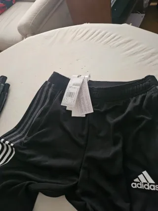 Conjunto deportivo completo de Adidas. 35€ por unidad o 65€ en conjunto. - Sudadera con capucha y cordones. - Pantalón con cintura elástica. - Diseño con las tres rayas icónicas de la marca en las mangas y piernas.