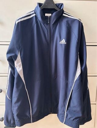 Chaqueta deportiva Adidas. - Diseño con las icónicas tres rayas en las mangas. - Paneles laterales en contraste. - Cremallera frontal completa. - Puños y cintura elásticos. - Bolsillos laterales con cierre de cremallera. A recoger en zona Recoletos, Banco de España y Chueca por las mañanas y zona Renfe Villaverde Bajo por las tardes. Mira mi perfil si te gustan más cosas hago descuento.