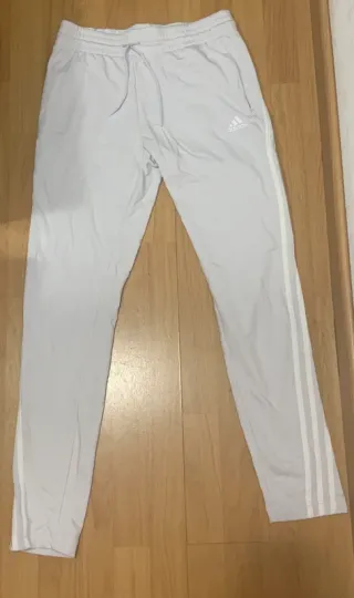 pantalón de chándal Adidas original en color gris con rayas blancas. Está en excelente estado, muy poco uso. > * Talla: XL de niños (equivalente a 15-16 años / 176 cm). > * Tecnología: AEROREADY para mayor transpirabilidad y comodidad al hacer deporte. > * Detalles: Logo bordado en blanco, bolsillos laterales y cintura elástica. > * Uso: Ideal para fútbol, entrenamiento o uso diario.