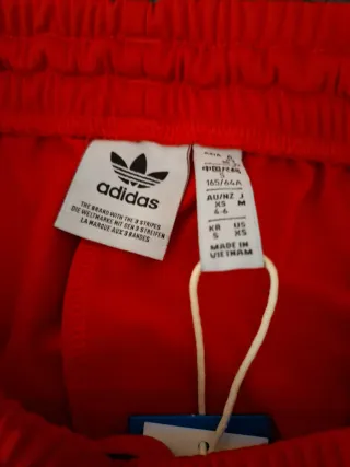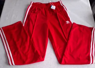 Pantalones deportivos Adidas de color rojo. Modelo FIREBIRD TP. Estatura 165 cm - Diseño con tres rayas blancas laterales. - Logo de Adidas bordado en blanco en la pierna derecha. - Cintura elástica con cordón ajustable. - Bolsillos laterales con cremallera. Ideal adolescentes