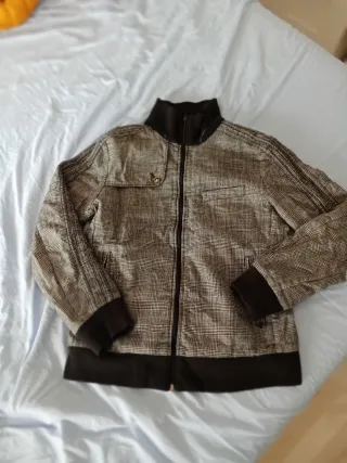 Chaqueta Adidas Originals con un diseño de cuadros en tonos beige y marrón. Presenta un cuello alto y cierre de cremallera. - Diseño de cuadros. - Cuello alto. - Cierre de cremallera.