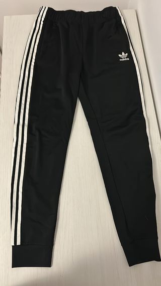 Conjunto de chándal Adidas Originals SST, inspirado en el estilo clásico de los años 70. La chaqueta cuenta con cremallera frontal y el pantalón tiene cintura elástica. Talla S. Estilo "SST Tracksuit" Unisex. - Diseño con las icónicas tres rayas laterales. - Logo de Adidas en la chaqueta y el pantalón.
