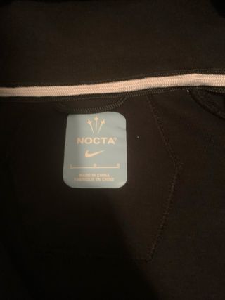 Chaqueta deportiva Nike NOCTA en color negro. Diseño moderno y funcional. - Logo de Nike bordado en color dorado. - Inscripción NOCTA en la manga izquierda. - Dos bolsillos frontales con cremallera.