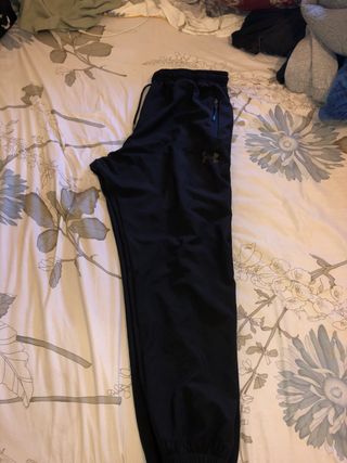 Pantalón de chándal de la marca Under Armour en color negro. Cuenta con cintura elástica y cordón ajustable para un mejor ajuste. - Dos bolsillos laterales con cremallera. - Logo de la marca visible en la pierna.