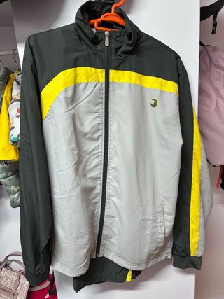 Conjunto deportivo de chándal de la marca Middlemoon. - Diseño con bloques de color verde y amarillo. - Cremallera frontal completa. - Cuello alto. - Puños y cintura elásticos.