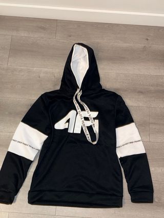 Sudadera con capucha de la marca 4F. - Diseño en color negro con detalles blancos en las mangas. - Cordones blancos en la capucha con texto impreso. - Logo grande de 4F en blanco en el pecho.