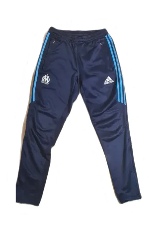 Pantalón de chándal ORINAL Adidas del equipo de fútbol Olympique de Marsella Talla S. Condición 8/10 Desperfectos: tiene un pequeño engancho en la parte trasera ( ver última foto) qué no tiene importancia, no es roto. Medidas 38 de cintura sin estirar la goma, 45 con goma estirada, 97 largo de pierna