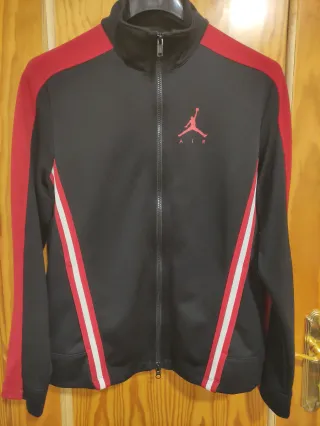 Chándal Jordan completo, en negro, rojo y blanco. - Mangas y detalles laterales en contraste. - Logo de Jordan en el pecho. - Cremallera frontal completa. - Cuello alto. - Pantalón a juego.
