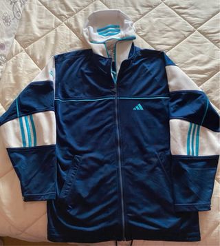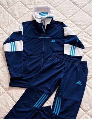 Conjunto deportivo Adidas en azul marino. Está en muy buen estado. - Incluye sudadera con capucha y pantalón deportivo. - Talla: L