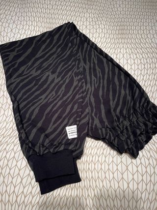 Moderno pantalón de chandal ZARA unisex Nuevo pero Sin etiqueta. Estampado como de camuflaje, tonos negro y verde oscuro con cintura de goma y puños al final de las piernas. Talla 13/14 ( 164cm) Nuevo a estrenar Descuento a partir del segundo artículo