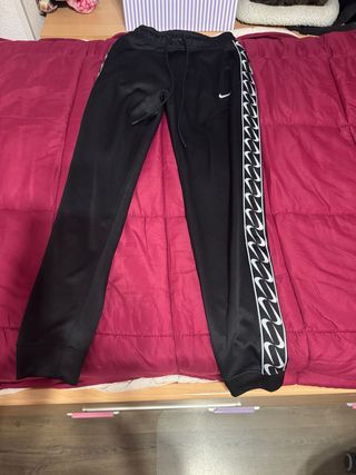 Conjunto deportivo de chándal Nike Air. - Diseño con bloques de color. - Pantalón con cintura elástica. - Sudadera con capucha. -Son una talla M y L de niño así que la sudadera es como una S de mujer y los pantalones en pelin mas pequeños
