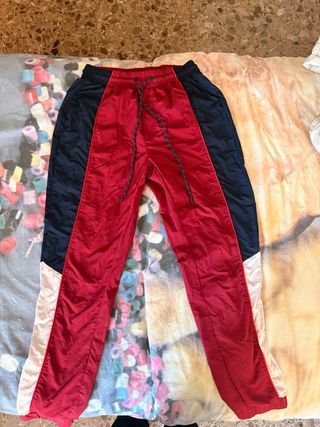 Pantalón de chándal con un diseño deportivo y llamativo. - Paneles laterales en contraste. - Cintura con cordón ajustable. - Estilo retro.