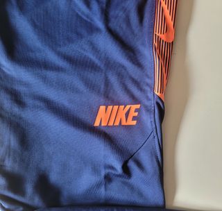 Pantalón azul y naranja bolsillos laterales con cremallera, ajustado en la parte baja. Talla L. Marca NIKE. Nuevo sin estrenar.