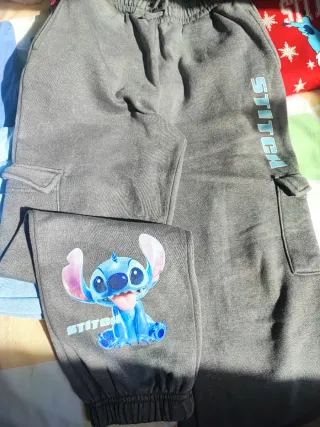 Pantalones de chándal grises con un divertido estampado de Stitch. - Estampado de Stitch en la pierna. - Detalle de texto Stitch en la pierna. - Bolsillos cargo.