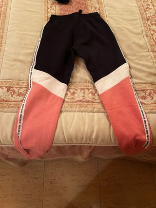 Chándal con un diseño moderno y bloques de color. - Parte superior negra. - Diseño de bloques en blanco y rosa en la parte inferior de las piernas. - Cintura con cordón ajustable.
