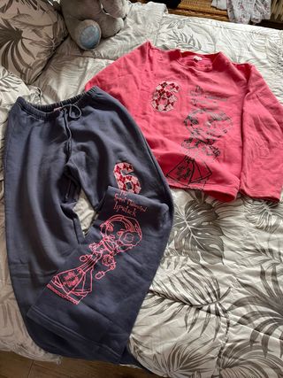Conjunto de chándal para niña. •Esta nuevo se ha usado una vez y se guardo en el armario, lleva dos años guardado habria que lavarlo solamente porque de estar guardado se ha puesto un poco sucio ( he puesto foto) TALLA 16 (166cm)