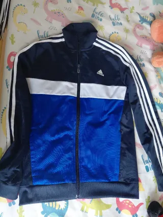 Conjunto deportivo Adidas para niño. - Chaqueta con cremallera completa. - Pantalón con cintura elástica. - Tres rayas icónicas en las mangas y perneras. - Logo de Adidas bordado. Chaqueta talla 11-12 junior. Pantalon talla9-10 junior. La cremallera funciona perfectamente.
