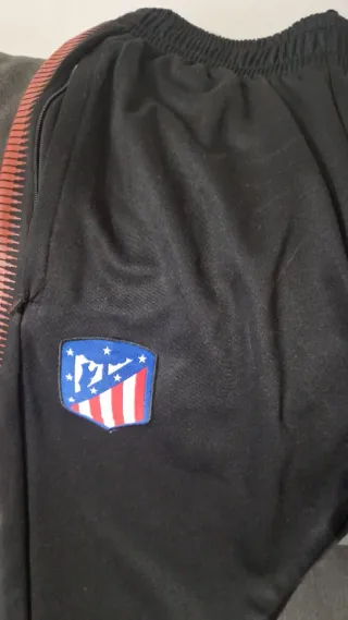 Pantalón de chándal del Atlético de Madrid. Original de la tienda oficial del Atlético de Madrid, se puede ver en las etiqueta. En perfectas condiciones, sin ningún roce ni desperfecto. - Diseño deportivo. - Escudo del club en la pierna. - Logo de la marca visible.