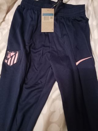 Pantalones de chándal para niño del Atlético de Madrid, de la marca Nike. Están en buen estado. - Diseño con el escudo del Atlético de Madrid. - Cómodos y suaves.