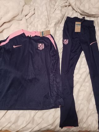 Chándal azul marino con Rosa del Atlético de Madrid temporada 2024-2025. Talla M. Lo vendo porque he cogido mal la talla y no lo he estrenado.